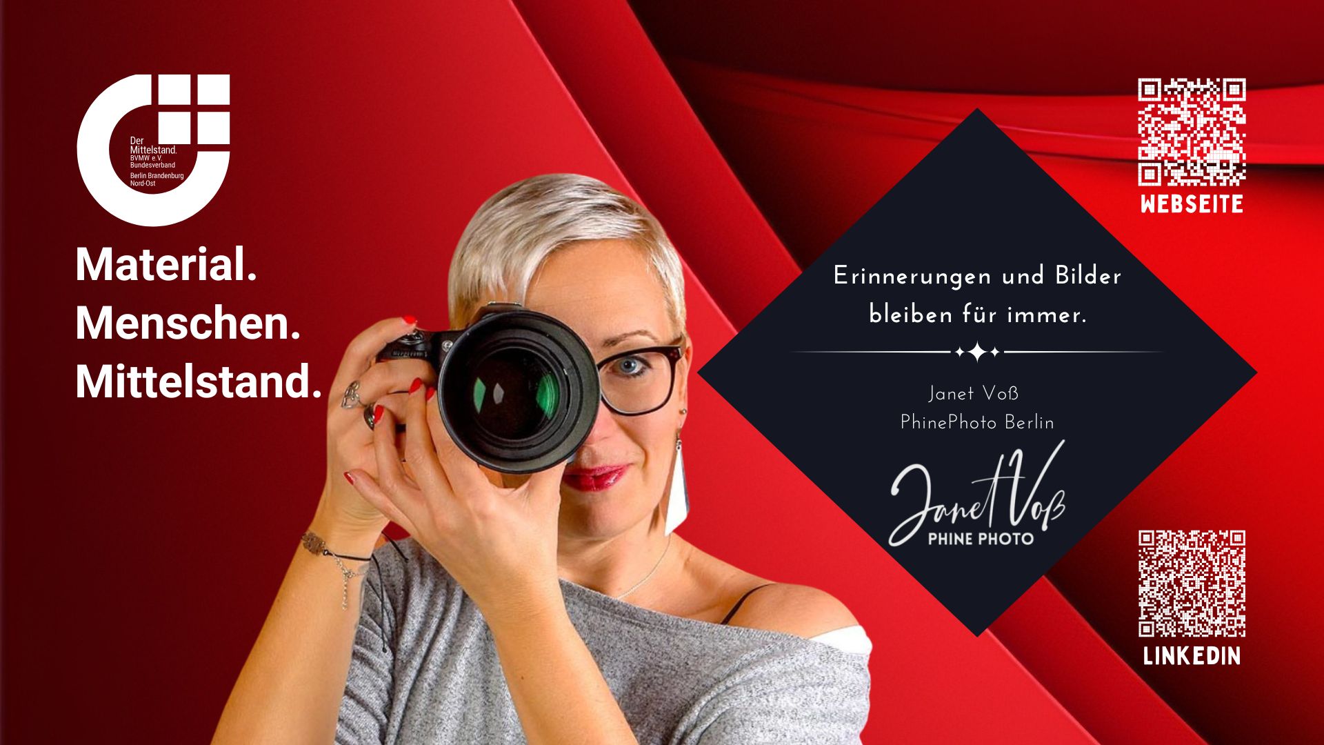 Während der Veranstaltung ist unsere professionelle Fotografin Janet Voß - PhinePhoto vor Ort. Mit Ihrer Teilnahme erklären Sie sich einverstanden, dass Bildaufnahmen für Zwecke der Veranstaltungsdokumentation verwendet werden dürfen.